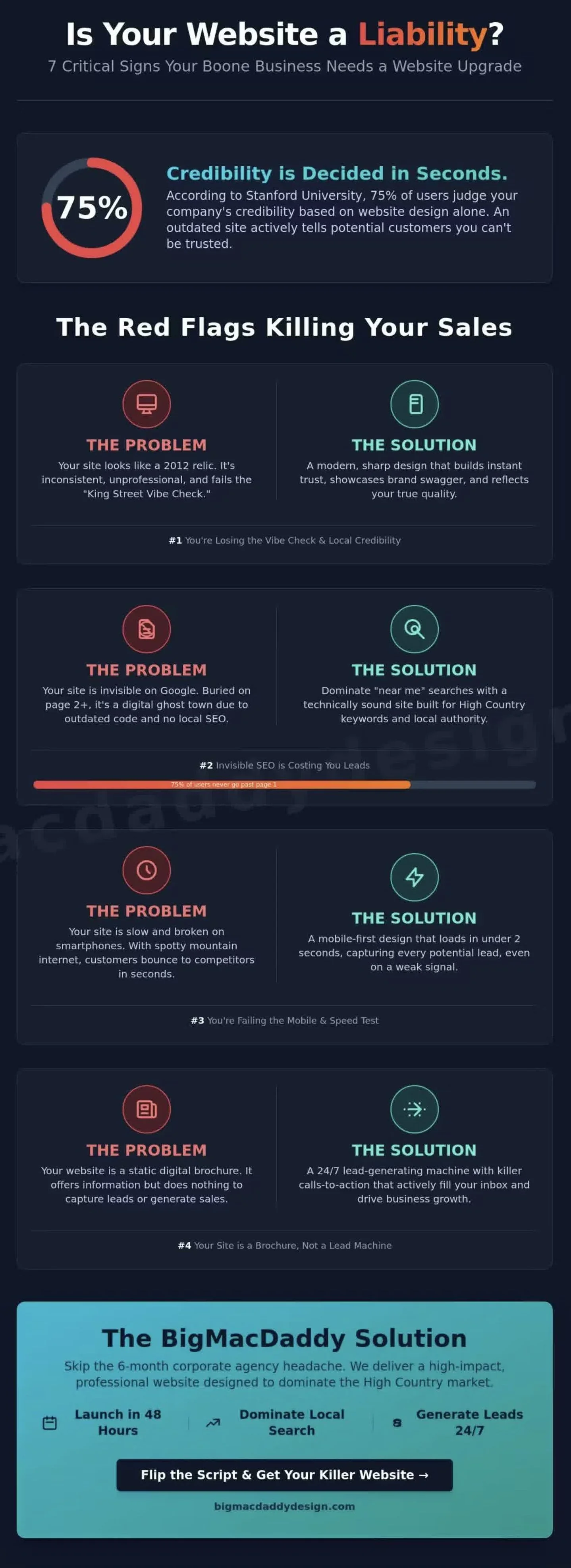 Table of Contents: Does Your Website Pass the King Street Vibe Check?The Invisible SEO Killers Holding Your Boone Business Back. The Mobile & Speed Trap: Why High Country Customers Are Bouncing. Is Your Site a Static Brochure or a 24/7 Lead Machine?The BigMacDaddy Solution: A Killer Website in Just Two Days